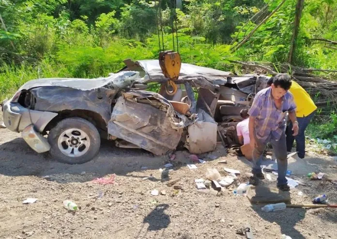 วันที่ 9 เม.ย. พ.ต.ท.เด่นคุณ แดงเครือ สารวัตร (สอบสวน) สภ.ห้วยยาง อ.ทับสะแก จ.ประจวบคีรีขันธ์ ได้รับแจ้งมีอุบัติเหตุรถชนต้นไม้ บริเวณริมถนนเพชรเกษม ขาล่องใต้หลักกิโลเมตร 333 หมู่ 6 บ้านคอกม้า ต.ห้วยยาง อ.ทับสะแก จ.ประจวบคีรีขันธ์ อยู่ฝั่งตรงข้ามโรงเรียนห้วยยางวิทยา เบื้องต้นมีผู้เสียชีวิตและบาดเจ็บในที่เกิดเหตุหลายราย จึงรายงานผู้บังคับบัญชาทราบและรีบเดินทางไปที่เกิดเหตุ พร้อมด้วย เจ้าหน้าที่ตำรวจทางหลวงประจวบคีรีขันธ์หน่วยบริการทับสะแก, อาสาสมัครกู้ภัยมูลนิธิสว่างรุ่งเรืองธรรมสถาน, เจ้าหน้าที่กู้ภัยตำรวจทางหลวงประจวบคีรีขันธ์จุดทับสะแก และเจ้าหน้าที่กู้ชีพ อบต.ห้วยยาง