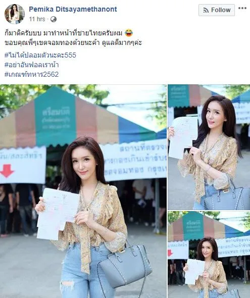 ล่าสุด โลกโซเชียลก็มีการแชร์ภาพของสาวสวยคนหนึ่ง ที่ได้ออกไปทำหน้าที่ "ชายไทย" ด้วยการไปเกณฑ์ทหาร ซึ่งความสวยเป๊ะของเธอ ทำเอาชาวเน็ตต่างแชร์สนั่นและพูดเป็นเสียงเดียวกันว่าเธอน่าสนใจที่สุดในปีนี้ โดยผู้ใช้เฟซบุ๊กชื่อ Pemika Ditsayamethanont ได้เผยภาพ พร้อมแคปชั่นว่า