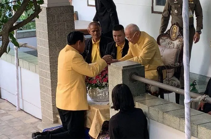 วันที่ 10 เม.ย.62 ที่บ้านพักสี่เสาเทเวศร์ พล.อ.เปรม ติณสูลานนท์ ประธานองคมนตรีและรัฐบุรุษ เปิดบ้านพักรับรองสี่เสาเทเวศร์ให้ ให้ พล.อ.ประยุทธ์ จันทร์โอชา นายกรัฐมนตรี และหัวหน้าคณะรักษาความสงบแห่งชาติ (คสช.) นำคณะรัฐมนตรี ปลัดกระทรวงกลาโหม ผู้บัญชาการเหล่าทัพ และผู้บัญชาการตำรวจแห่งชาติ เข้ารดน้ำขอพรเนื่องในเทศกาลสงกรานต์