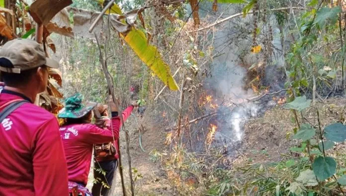 นางภัทราวดี ปัญญา นายอำเภอพาน นำเจ้าหน้าที่เข้าดับไฟป่าพื้นที่หมู่ 11 ต.แม่อ้อ อ.พาน จนสามารถควบคุมไฟได้บางส่วน แต่เมื่อถึงจุดที่เเป็นหุบเขาและหน้าผาสูงชัน พบมีลมตีกลับทำให้เกิดควันไฟคลุ้งและส่งผลทำให้หายใจได้สะดวก ทำให้การดับไฟเป็นไปด้วยความยากลำบาก และไฟได้ลุกลามเป็นพื้นที่กว้างประมาณ 500 ไร่ ล่าสุดทำแนวกันไฟเอาไว้ และคาดว่าจะต้องใช้เวลาดับไฟอีกประมาณ 1-2 วัน จึงจะสงบ