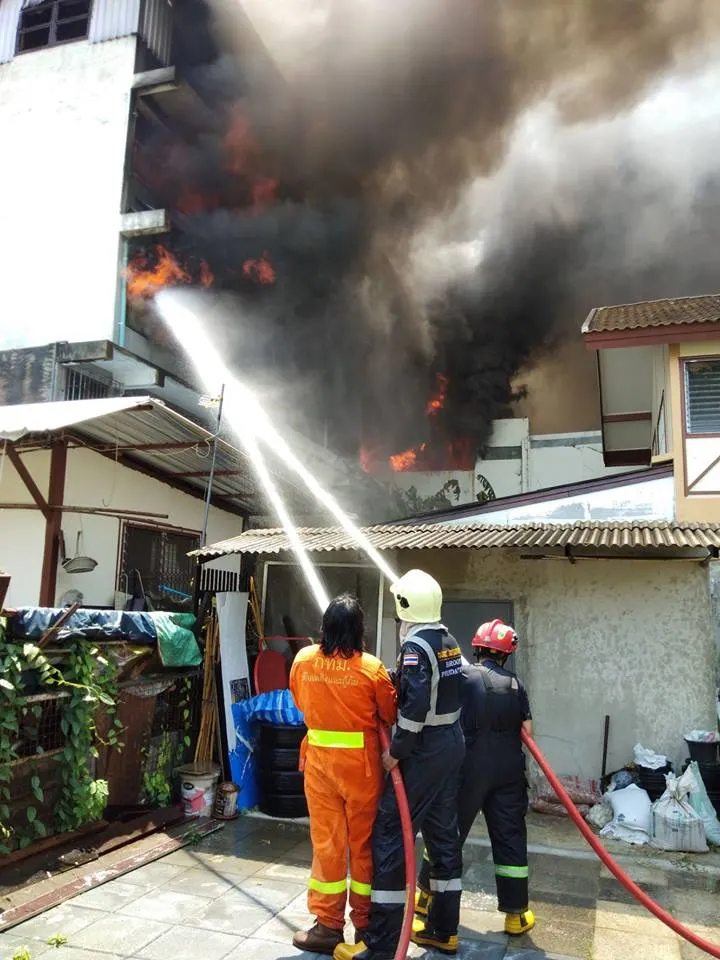เมื่อเวลา 12.05 น. วันที่ 10 เม.ย สายด่วน 199 รับแจ้ง มีเหตุเพลิงไหม้โรงงานเจริญภัณท์ ซอยโชคชัย 4 ซอย 54 แยก 12 แขวงลาดพร้าว เขตลาดพร้าว ก่อนลุกลามไปยังตึกพาณิชย์ด้านหลังโรงงาน ทำให้อาคารพาณิชย์ใกล้เคียงเสียหายทั้งหมด 2 ตึก