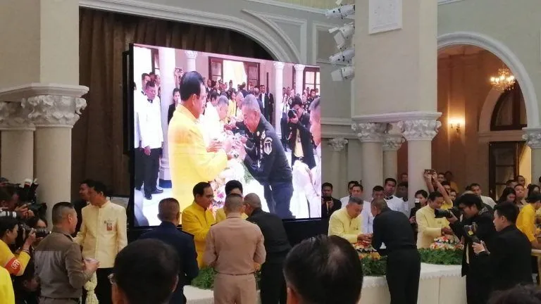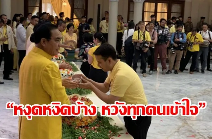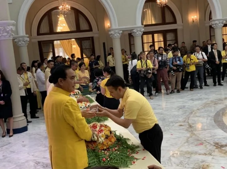 อย่างไรก็ตาม นายกรัฐมนตรี และ พล.อ.ประวิตร วงษ์สุววรณ รองนายกรัฐมนตรี และ รัฐมนตรีว่าการกระทรวงกลาโหม พูดคุยกันเป็นระยะ ด้วยสีหน้ายิ้มแย้ม พร้อมจูงมือเข้าตึกไทยคู่ฟ้า ก่อนร่วมพิธีสรงน้ำพระ และเปิดให้รดน้ำขอพร เพื่อความเป็นสิริมงคล