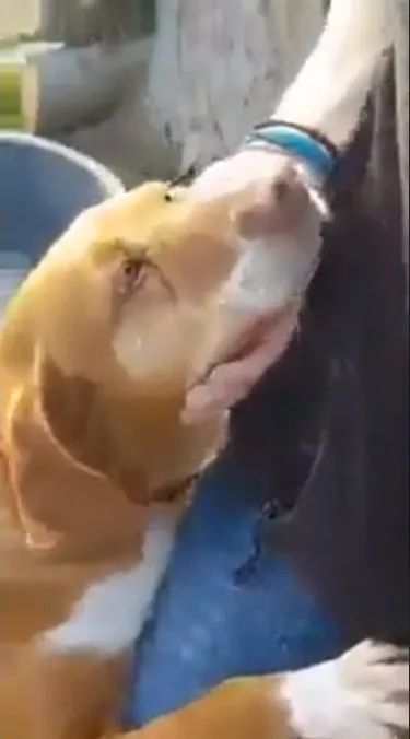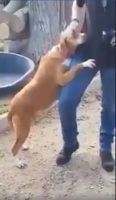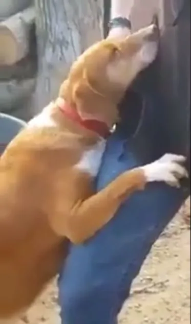 มันกระโดดยืนขึ้นใช้ขาหน้าทั้ง 2 ข้างเกาะขาของนักข่าวเอาไว้ แล้วก็เอาหัวไปซบไว้ที่สะโพก ราวกับกำลังพยายามอ้อนขอความสนใจอย่างหนัก