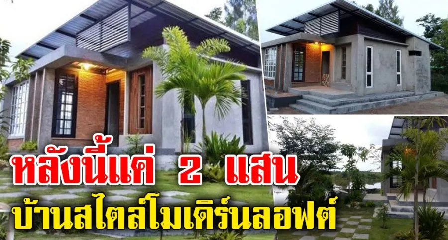 แบบบ้านชั้นเดียว สไตล์โมเดิร์นลอฟต์ สร้างด้วยงบเพียง 2 แสนบาท