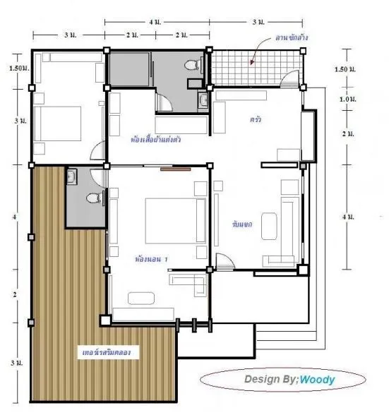บ้านหลังนี้เป็นบ้านของคุณ Woody Watcharawut และยังเป็นบ้านที่เจ้าของบ้านออกแบบเอง คุมงานและลงมือทำเองด้วย ใช้เวลาในการก่อสร้างประมาณ 1 ปี 4 เดือน และหมดงบไปประมาณสองแสนต้นๆ