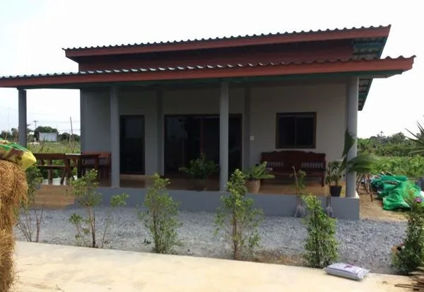 บ้านชั้นเดียวยกพื้น หลังคาเพิงหมาแหงน 2ห้องนอน2ห้องน้ำ งบไม่เกิน500,000บาท