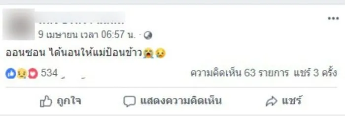 ขณะที่โพสต์สุดท้ายของ หนึ่ง ธีร์นรา เมื่อวันที่ 9 เมษายน ระบุถึงไว้ชวนเห็นใจว่า "ออนซอน ได้นอนให้แม่ป้อนข้าว" (เอ็นดูแท้ ต้องนอนให้แม่ป้อนข้าว) ก่อนจะปรากฏเป็นข่าวว่าพระเอกหมอลำ รายนี้เสียชีวิตลงจากโรคประจำตัวดังกล่าว