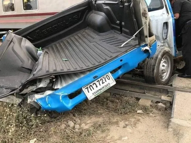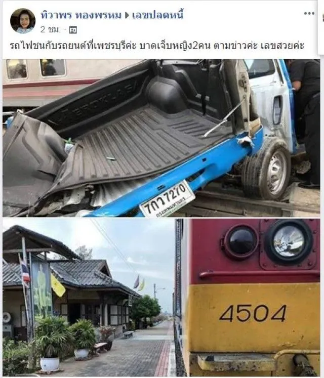 เมื่อวันที่ 10 เม.ย. บริเวณทางตัดรถไฟเขาทะโมน ต.ท่าเสน อ.บ้านลาด จ.เพชรบุรี เกิดเหตุรถไฟด่วนขบวนที่ 31 กรุงเทพฯ-หาดใหญ่ ชนรถยนต์กระบะของพนักงานดีแทค ยี่ห้ออีซูซุ 4 ประตู ติดสติกเกอร์ฟ้าขาวของดีแทค หมายเลขทะเบียน 7 กว 7270 กรุงเทพมหานคร ได้รับความเสียหายทั้งคัน