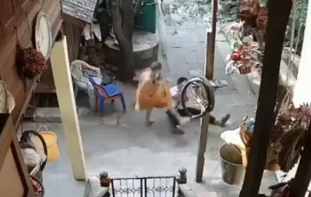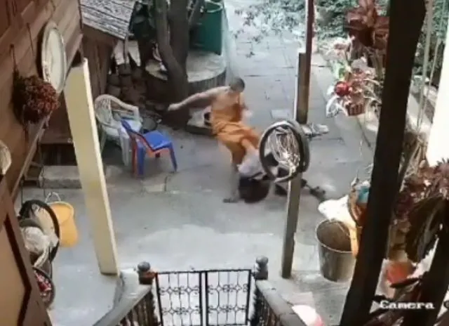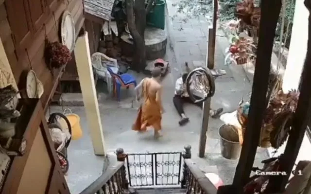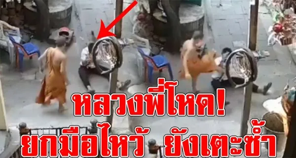 เปิดคลิปนาที หลวงพี่โหด ไล่กระทืบชายสติไม่ดี ยกมือไหว้แล้วยังเตะซ้ำ