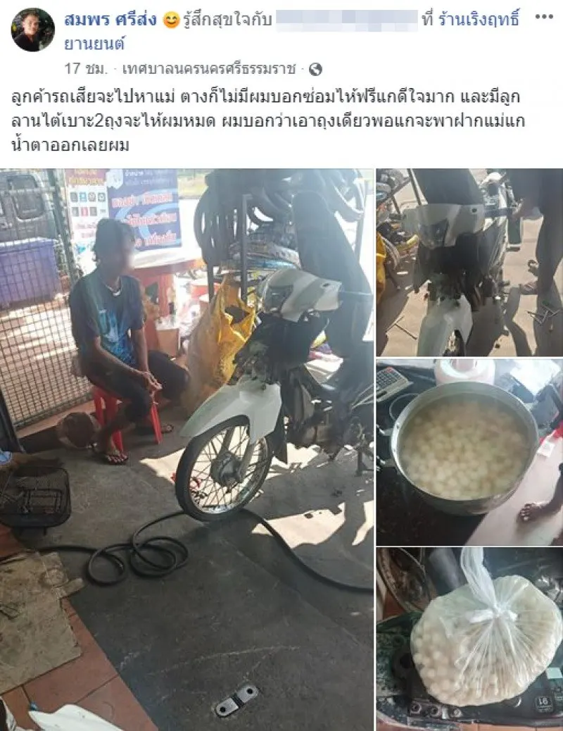 วันนี้ ( 14 เม.ย.) เพจผู้ใช้เฟซบุ๊กชื่อ สมพร ศรีส่ง ได้เผยแพร่เรื่องราวสุดซาบซึ้งในช่วงเทศกาลวันสงกรานต์ ขณะมีชายหนุ่มกำลังจะกลับบ้าน รถมอไซค์เกิดยางรั่ว แต่ไม่มีเงินเปลี่ยน ผมจึงให้ซ่อมฟรี ใต้โพสต์ได้ระบุข้อความว่า…