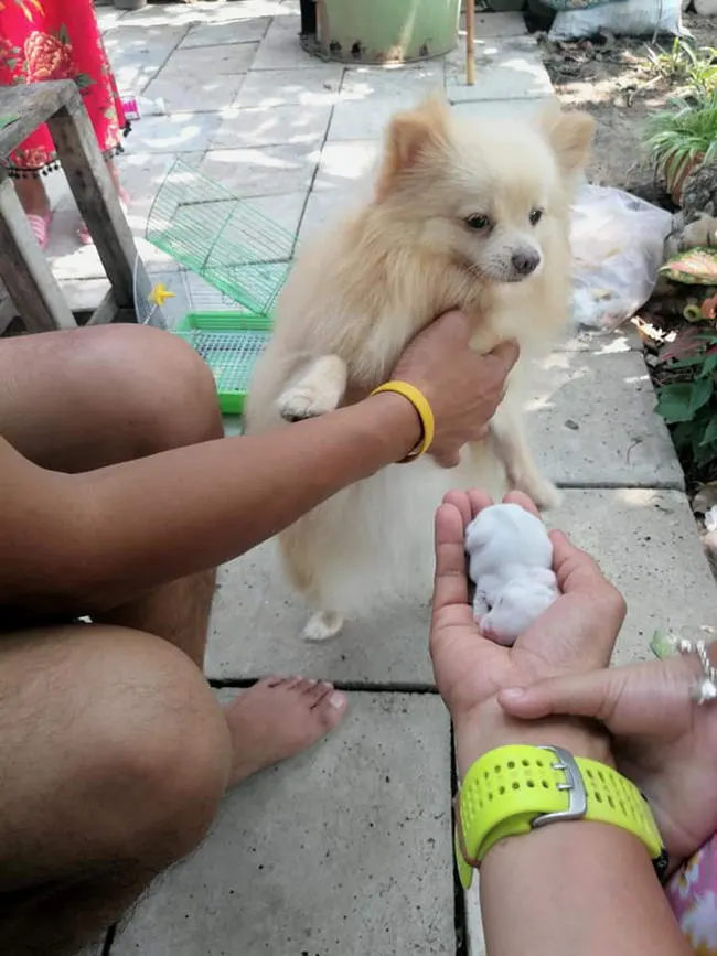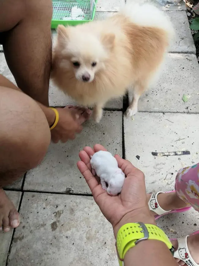 หลังจากนั้นก็มีชาวเนตถามว่าเป็นตัวอะไรกัน ซึ่งเจ้าของโพสต์ตอบว่าเป็นลูกกระต่าย ซึ่งข้างบ้านได้เลี้ยงกระต่ายไว้ แต่ว่าไม่รู้ว่าลูกคอกไหน แต่เจ้าปอมที่มีชื่อว่า “มะลิ” ก็คาบมาให้คุณแม่ ซึ่งเธอได้เอาลูกกระต่ายวางไว้ เพื่อให้แม่กลับมารับไป แต่ก็ไม่มีกระต่ายตัวไหนกลับมารับลูกๆมันเลย