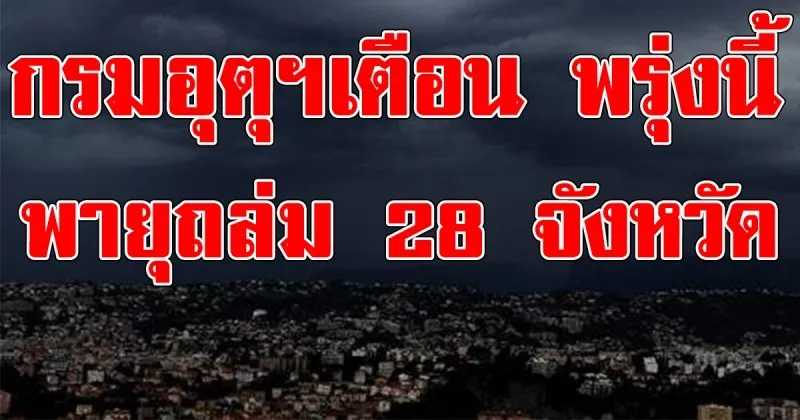 กรมอุตุฯประกาศเตือน พรุ่งนี้พายุถล่ม 28 จังหวัด ให้ระวังฟ้าผ่า ลูกเห็บตก