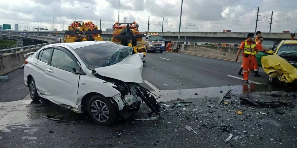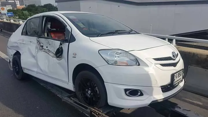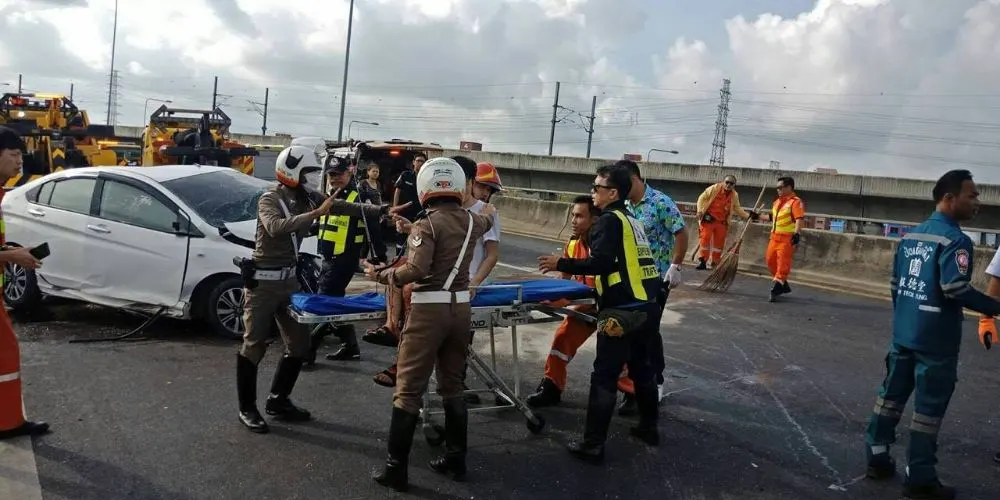 นายเดชณรงค์ วงศ์มูล หนุ่มพะเยา วัย 29 ปี ขับเก๋งสีขาว ฮอนด้า ซิตี้ หมายเลขทะเบียน ทษ 5206 เชียงราย ชนรถบนถนนหลายคัน ก่อนขับย้อนศรหนีขึ้นไปบนทางด่วนศรีรัช ช่วงพระราม 9 แล้วไปชนกับโตโยต้า วีออส สีขาว หมายเลขทะเบียน ฎง 8507 กทม. และแท็กซี่เขียวเหลือง หมายเลขทะเบียน 1 มข 1499 กทม. บนทางด่วน กม.10+200A ช่วงเหนือเดอะไนน์ พระราม 9 ช่วงก่อนทางลงรามคำแหง