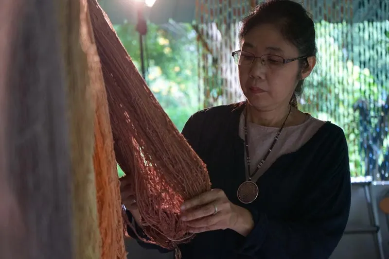 คุณรัตนา หล้าคำ (ใส่หมวก) และ คุณเจนจิรา จอมแปง ผู้ก่อตั้ง กลุ่มทอผ้าย้อมสีธรรมชาติ บ้านไม้ตะคียนปม จ.ลำพูน