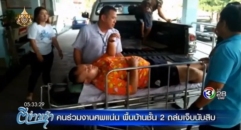 คนร่วมงานเจ็บระนาว..รดน้ำศพในบ้านดี ๆ บ้านชั้น 2 ถล่มลงมา !