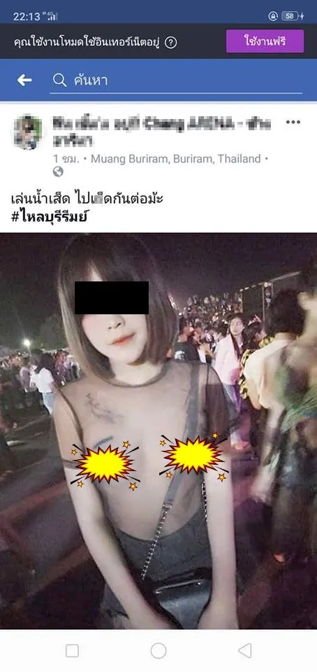 ชาวเน็ตแห่แชร์ !! สาวใส่เสื้อบางเห็นหัวจุก เล่นน้ำสงกรานต์ โพสภาพลง เฟส ไม่แคร์ใคร ล่าสุด ลบไปแล้ว