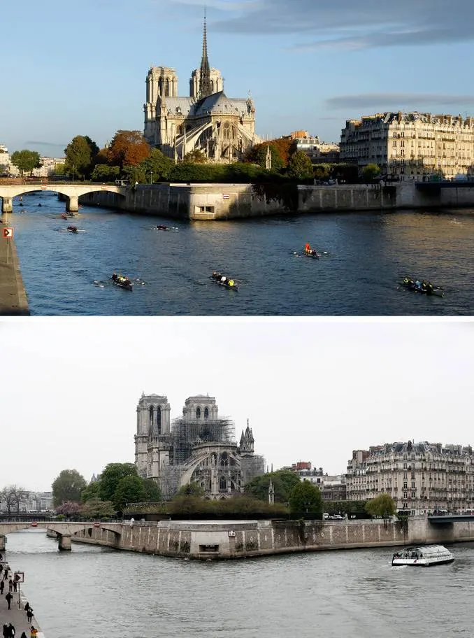 ภาพ Notre Dame ก่อน และ หลังไฟไหม้