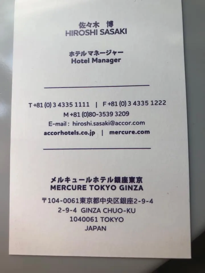คุณพ่อ + 66 81 896 6145 หรือติดต่อเบอร์โทรโรงแรมตามนามบัตรในรูปสุดท้าย โรงแรม MERCURE TOKYU GINZA ด้วย