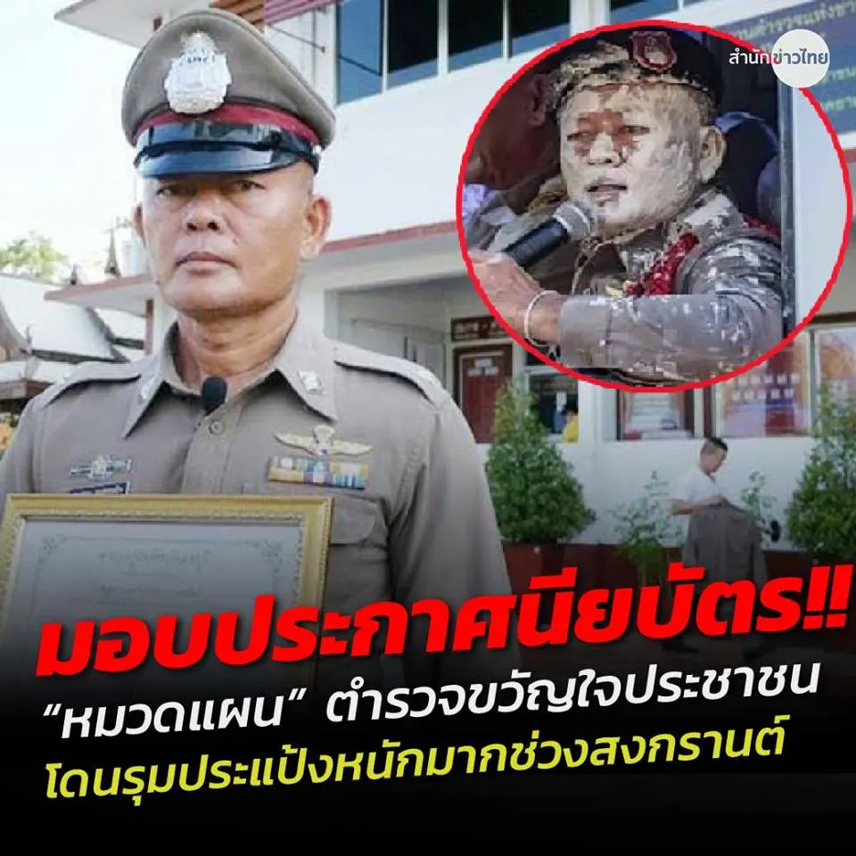 มอบใบประกาศนียบัตรให้กับ “หมวดแผน” ตร.ขวัญใจประชาชน โดนรุมทาแป้งหนักมากช่วงสงกรานต์