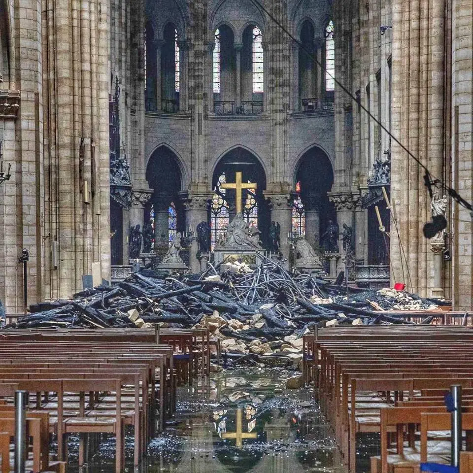 ในขณะที่สถานการณ์ล่าสุด เอ็มมานูเอล เกรกัวร์ รองนายกเทศมนตรีปารีส กล่าวว่า มหาวิหารได้ถูกทำลายอย่างหนัก และหน่วยฉุกเฉินได้พยายามรักษางานศิลปะและของมีค่าอื่นๆ ที่อยู่ภายในมหาวิหาร ในขณะที่ โครงสร้างภายในที่ทำจากไม้ได้รับความเสียหายหนัก
