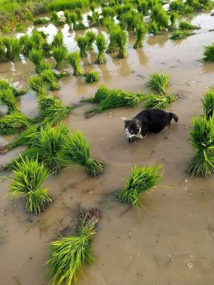 เป็นภาพความน่ารักของเจ้าเหมียวตัวหนึ่ง ที่ต้องออกไปทำงานกับเจ้าของ เพราะกลัวว่าจะไม่ได้กินปลา อยู่บ้านท่าอย่างนิ่งดูดาย เหมียวก็เลยช่วยเจ้าของทำนา จะได้มีข้าวกิน เลยเป็นภาพความน่ารักที่ต้องแชร์