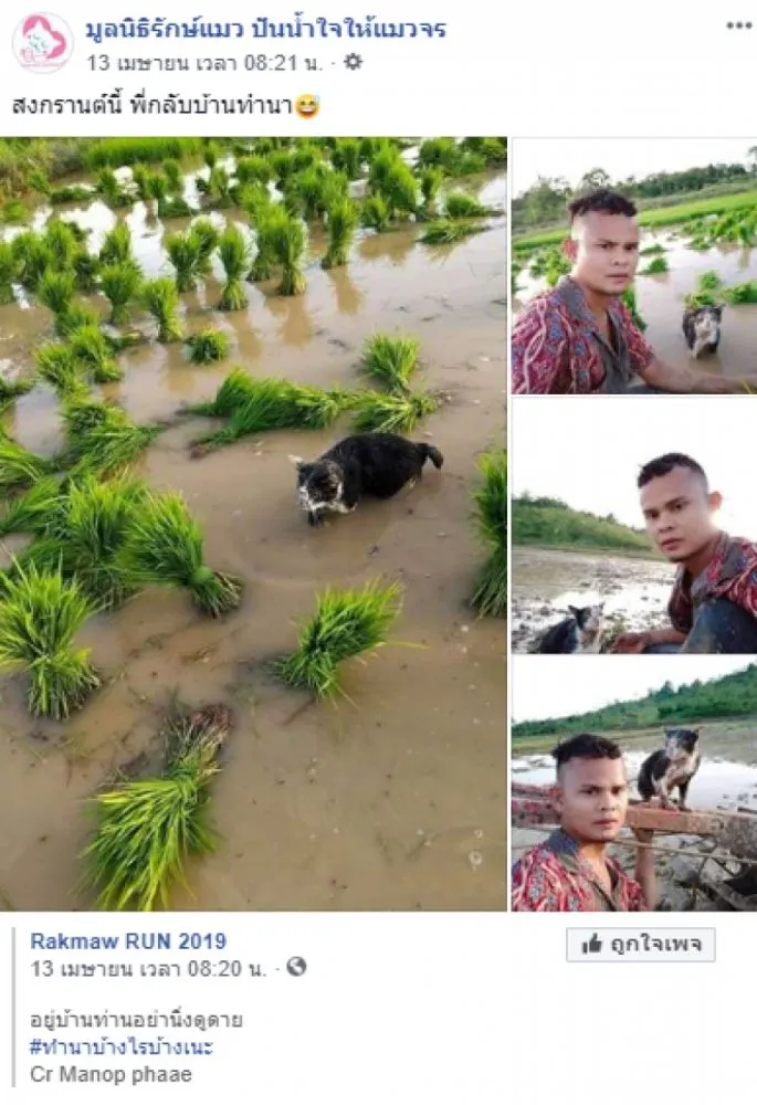 โดยจากเฟชบุ๊ก “Manop phaae” ได้ออกมาโพสต์ภาพเจ้าเหมียวที่ตามมาท้องนา เพื่อช่วยเจ้านายทำนา ซึ่งเป็นภาพที่น่ารักเป็นอย่างมาก เพราะเจ้าเหมียวตัวดังกล่าว เลอะเทอะ ตัวมอมแมม เต็มไปด้วยโคลนทั้งตัว