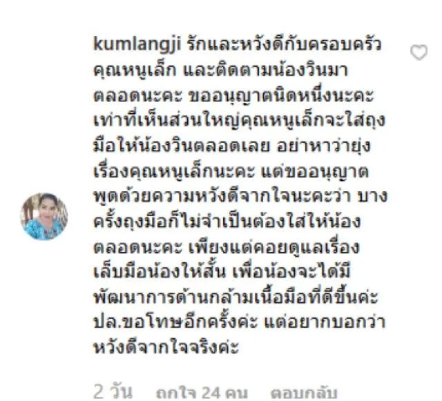 กลายเป็นคุณแม่ลูกอ่อนคนล่าสุดไปแล้วสำหรับตลกชื่อดัง หนูเล็ก ก่อนบ่าย ที่เพิ่งให้กำเนิดลูกชาย พี่วิน ไปเมื่อไม่นานมานี้ต้องบอกเลยว่า น้องวิน หน้าตาน่ารักน่าชังมากเป็นขวัญใจสาวเล็กสาวใหญ่ครึ่งประเทศแถมอารมณ์ดีเหมือนแม่สุดๆ ล่าสุดนี้ ก็ทำเอาดราม่าสนั่นจริงๆ เมื่อชาวเน็ตสังเกตเห็นที่มือของ พี่วิน ที่มีถุงมือสวมอยู่จึงมีการแสดงความเห็นเชิงเตือนว่าไม่ควรสวมตลอดเวลาเพราะมันจะมีปัญหากับพัฒนาการของเด็ก งานนี้ ด้าน หนูเล็ก ก็ได้ไปขอบคุณคำแนะนำและได้ชี้แจงด้วยว่าไม่ได้สวมให้น้องบ่อยสามารถดูลูกได้ใน IG ของเธอเลยแต่ดูเหมือนว่าจะมีชาวเน็ตคนอื่นๆเห็นต่างและเกิดประเด็นขึ้นส่วนเหล่าชาวเน็ตจะว่ายังไงไปชมได้ที่ด้านล่างเลยจ้า