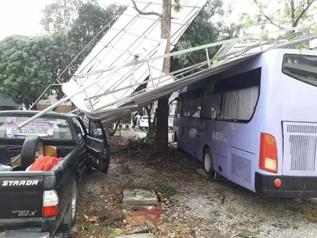 และ (5-8) ที่ สนง.ขนส่ง จ.สกลนคร บริเวณแฟลตที่พักของเจ้าหน้าท ก็ได้รับความเสียหายจากพายุฤดูร้อนเช่นกัน