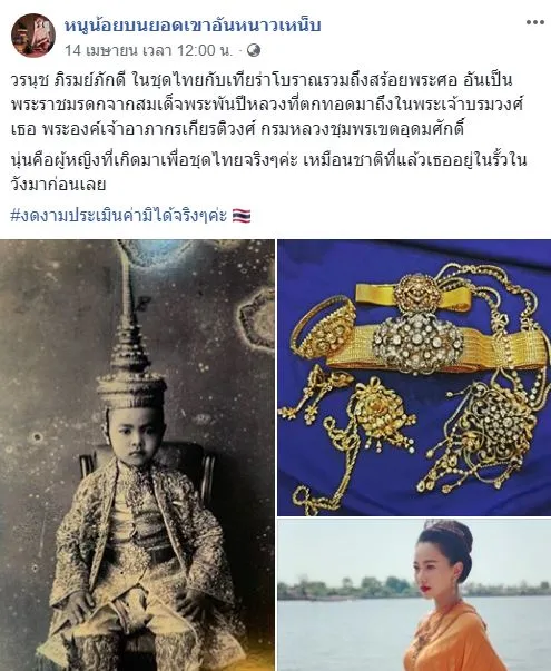 ล่าสุด เมื่อวันที่ 17 เมษายน 2562 ทางเพจ หนูน้อยบนยอดเขาอันหนาวเหน็บ ได้โพสต์ถึงความงดงามของนุ่น วรนุช ในชุดไทยราชสำนัก โดยระบุข้อความว่า