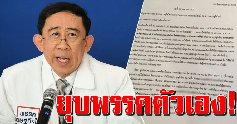 เมื่อวันที่ 18 เม.ย. ที่สำนักงานคณะกรรมการการเลือกตั้ง (กกต.) ผู้สื่อข่าวรายงานว่า ผู้สมัครพรรคเศรษฐกิจใหม่ นำโดยน.ส. อุลัยพร ไตรวงค์ย้อย นายประยงค์ สร้างศรีหา และ นายคมกฤษ สุภักดี ยื่นหนังสือถึงประธานกรรมการการเลือกตั้ง ขอให้ยุบพรรคเศรษฐกิจใหม่ และระงับการประกาศผลการเลือกตั้ง ส.ส.ของพรรคเศรษฐกิจใหม่ เนื่องจากถูกครอบงำจากบุคคลภายนอก ที่สั่งการชี้นำ ไม่ให้พรรคสามารถดำเนินกิจกรรมได้โดยอิสระ
