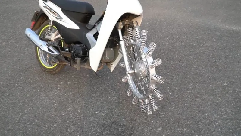 แน่นอนว่าเทคนิคดังกล่าว อยู่ในช่วงทดลอง หรือเรียกได้ว่าเป็นการทดลองว่า รถจะวิ่งได้หรือไม่หากเปลี่ยนจากยางปกติ เป็นสปริงโลหะแทน ซึ่งผลที่ออกมาก็ทำเอาหลายคนต้องปรบมือ เพราะมันสามารถวิ่งได้จริงๆ แต่คงต้องยอมรับว่า การใช้สปริงแทนยางรถนั้น ทำให้พื้นผิวสัมผัส ระหวางรถกับถนนลดลง ถ้าขับเร็วๆหรือเบรคแรงๆคงได้ลงไปนอนวัดถนนกันแน่นอน