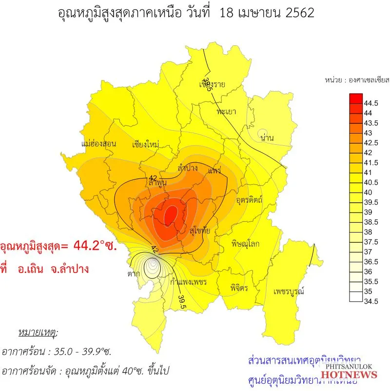 ลำปางร้อนติดอับดับโลก!! พุ่งทะยานไป 44 องศา ทุบสถิติขึ้นอับดับ 1 ในไทย