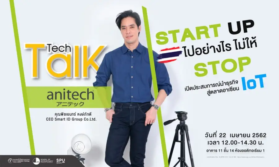 ม.ศรีปทุม Tech Talk Season 4#13 ขอเชิญนักศึกษาและผู้สนใจทุกท่าน ร่วมฟัง “START UP ไปอย่างไร ไม่ให้ Stop เปิดประสบการณ์นำธุรกิจ IOT สู่ตลาดอาเซียน”