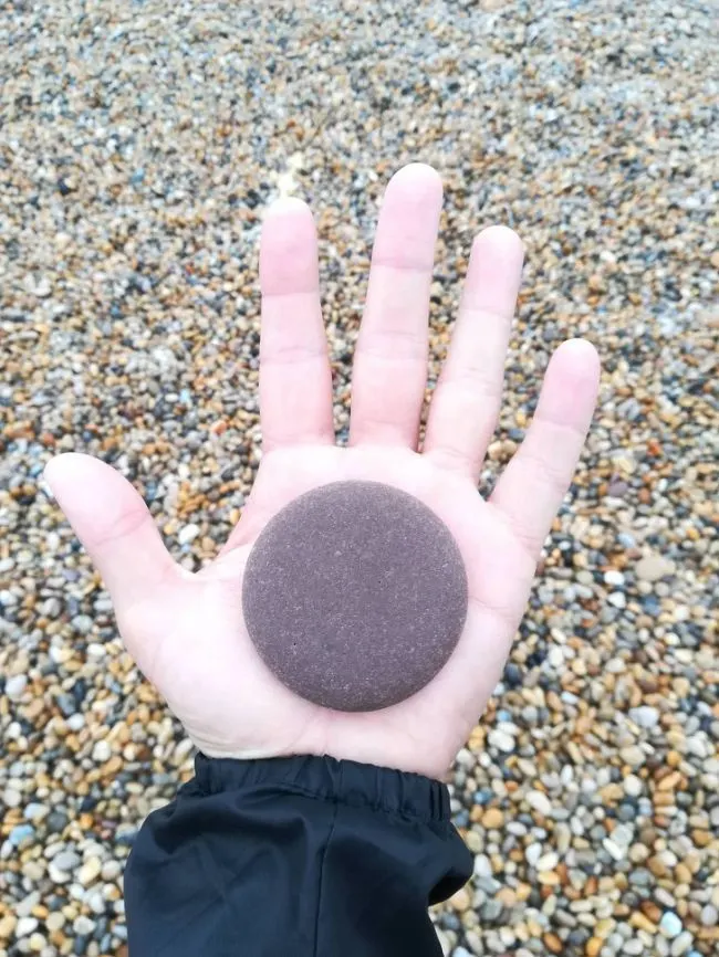 4 เจอหินกรวดที่กลมสนิทก้อนนี้ อยู่บนชายหาด