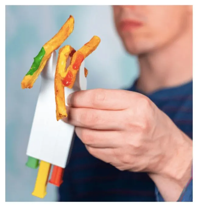 สำหรับคนที่ชื่นชอบการกิน อย่างเฟรนช์ฟราย เรามีให้คุณเลือกหลากรสโดยไม่ต้องพึ่งถ้วยซอสอีกต่อไป เพราะนี่คือ ซ้อมที่บีบซอสได้ในตัว แตะหลากรสชาติ