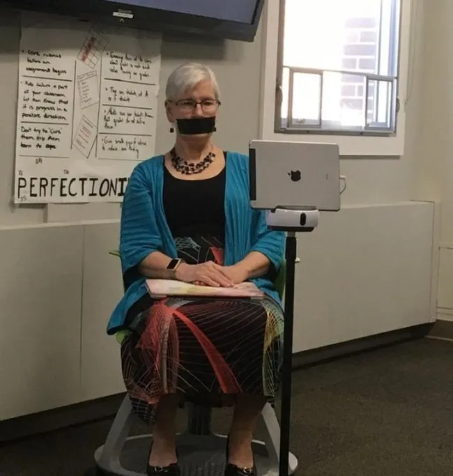1 “ คุณครูของฉันเอาเทปปิดปากของเธอในระหว่างที่นักเรียนกำลังนำเสนองานของพวกเขา ดังนั้นเธอจึงไม่ขัดจังหวะหรือเบี่ยงเบนประเด็นให้นักเรียนสับสน”