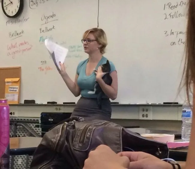 3 “ เราพบลูกแมวที่ถูกทิ้งเอาไว้ 5 ตัว มันวิ่งไปรอบ ๆ บริเวณโรงเรียนและครูของฉันจับมันไว้ได้ และเธอจึงนำมันมาสอนด้วยในระหว่างคาบ”