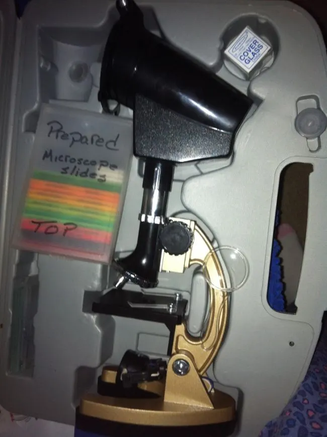 7 “ เมื่อวานนี้ครูสอนภาษาอังกฤษของฉันถามว่างานอดิเรกของฉันคืออะไร ฉันบอกว่าฉันไม่มีอะไรเลยและฉันชอบทำสิ่งต่างๆด้วยกล้องจุลทรรศน์ แต่ฉันไม่สามารถซื้อได้ วันนี้เขาให้กล่องนี้กับฉัน”