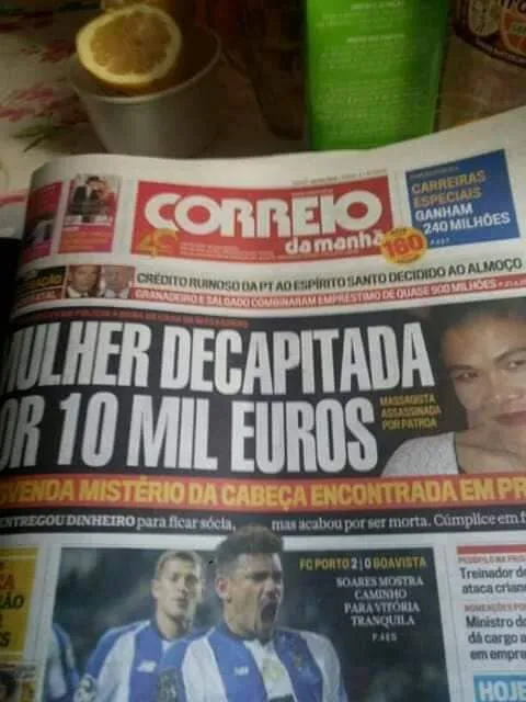 ทั้งนี้ สำนักข่าว cmjornal.pt ของประเทศโปรตุเกส รายงานว่าได้พบศพผู้หญิงชาวไทยซึ่งมีอาชีพเป็นหมอนวดบริเวณชายหาด Leça da Palmeira เมื่อวันที่ 7 มี.ค.ที่ผ่านมา โดยสุนัขที่อยู่ในบริเวณดังกล่าวได้คาบถุงพลาสติกที่อยู่ในกระเป๋าที่ถูกนำมาทิ้งไว้ ก่อนที่จะมีคนมาพบว่ามีศีรษะของคนอยู่ในถุงพลาสติกดังกล่าว
