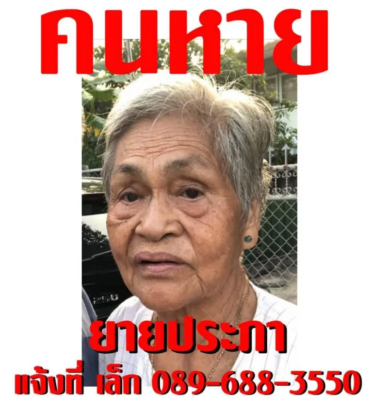 จากกรณีที่มีลูกชายโพสต์ผ่านเฟซบุ๊กส่วนตัว ประกาศตามหาคุณแม่ ประภา สุทธยาคม อายุ 84 ปี รูปร่าง หน้าตา สีผม (ตามรูป) หายไปจากบ้านในซอยนวมินทร์ 91 บึงกุ่ม กรุงเทพฯ ตอนกลางวันของวันที่ 14 เมษายน ที่ผ่านมาไม่รู้ไปไหน ไปพักที่ไหน ไปยังไงหรือไปกับใคร .. แม่เป็นอัลไซเมอร์อ่อนๆ ปกติจะจำทางกลับบ้านได้ จำเลขที่บ้านได้ แต่อาจจะมีการหลงลืมเฉียบพลันได้เช่นกัน.. ที่สำคัญคือ คุณแม่ไม่ได้เอายาไปครับ ทั้งยาเบาหวาน ความดัน อัลไซเมอร์