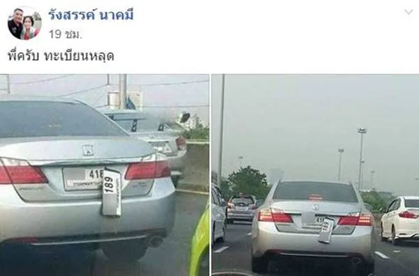 กลายเป็นภาพที่ถูกแชร์ต่อกันในโลกออนไลน์ หลังจากเมื่อวานนี้ (20 เมษายน 2562) Facebook นึง...ได้โพสต์ไปยังกลุ่ม เครือข่ายเพื่อนตำรวจ ซึ่งเป็นภาพของรถเก๋งคันหนึ่ง สวมทะเบียนรถซ้อน โดยมีป้ายทะเบียนรถอันหนึ่งหลุดห้อยออกมา ทำให้รถที่ขับตามหลังจับภาพได้ชัดเจน