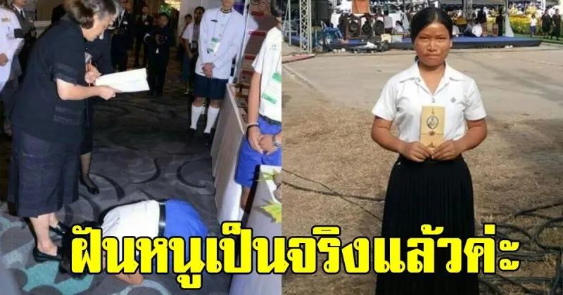 วันนี้น้องทำสำเร็จแล้ว ได้กราบพระองค์ท่าน น้องบอกกับพระองค์ท่านว่า ตั้งใจเรียนได้ที่ 1 มาตลอด แล้วอยากตอนแทนสังคมด้วยการเป็นครู