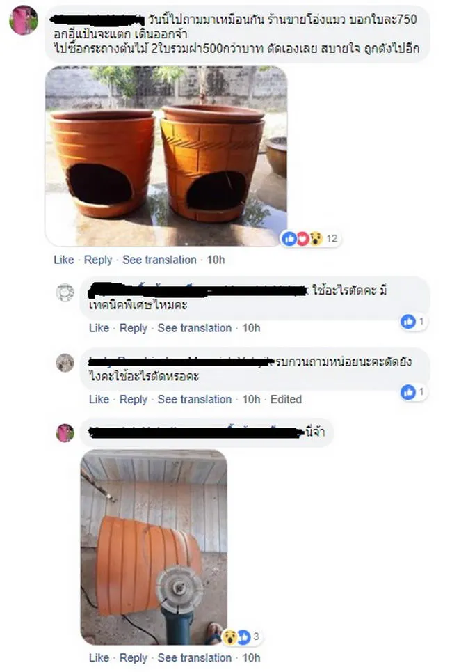ซึ่งหลังที่โพสต์ลงในกลุ่มทาสแมว ก็มีชาวเนตเป็นจำนวนมากเข้ามารีวิวกันให้เพียบถึงโอ่งแมว ชาวเนตท่านหนึ่งบอกว่าไปซื้อโอ่งแมวถามราคาตกใบละ 750 บาท จึงเปลี่ยนใจไปซื้อกระถางต้นไม้สองใบ 500 กว่าบาท และเอามาตัดเองก็สวยงามไม่น้อย