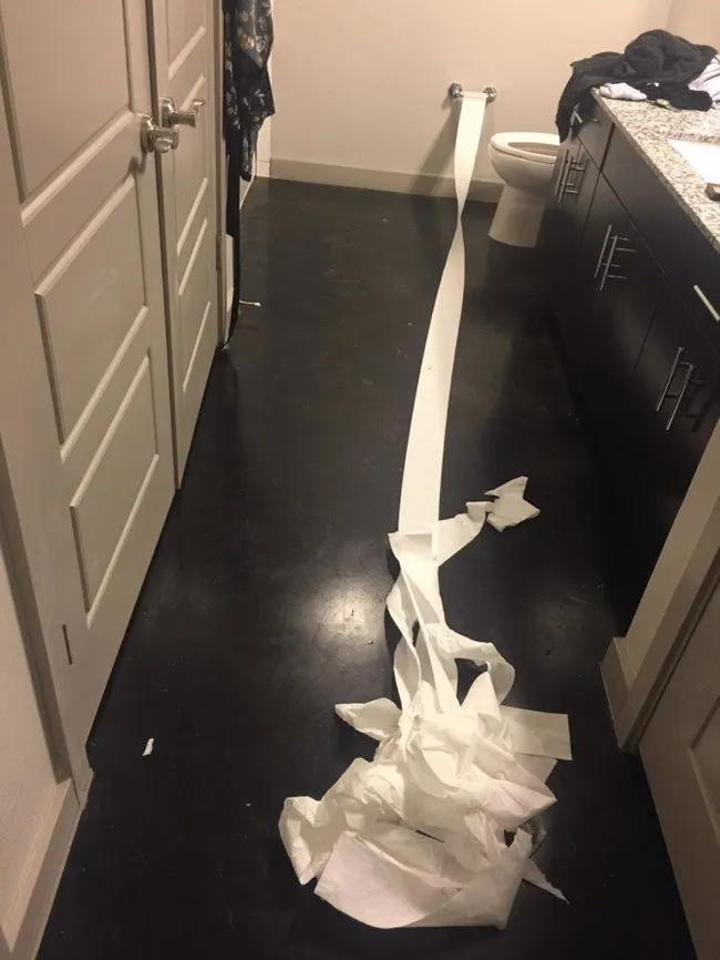 อยู่มาวันหนึ่ง Hampton กลับถึงบ้านและพบกองกระดาษชำระเกือบทั้งม้วนอยู่บนพื้น