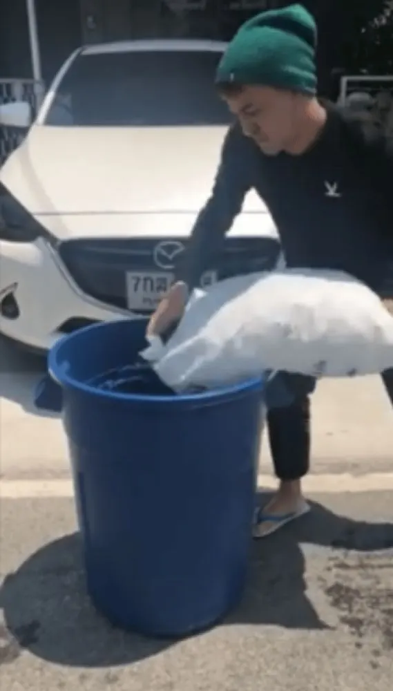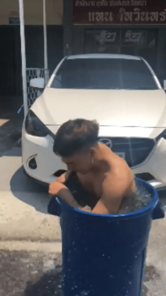 เป็นอีกหนึ่งวิธีคลายร้อนที่ฮาสุดๆ เมื่อผู้ใช้เฟซบุ๊กชื่อ “ลูกตั้ม เมืองลิง” ได้มีการโพสต์คลิปวิธีคลายร้อน โดยการนำถังใส่น้ำจนเต็ม แล้วก็ตามด้วยน้ำแข็ง