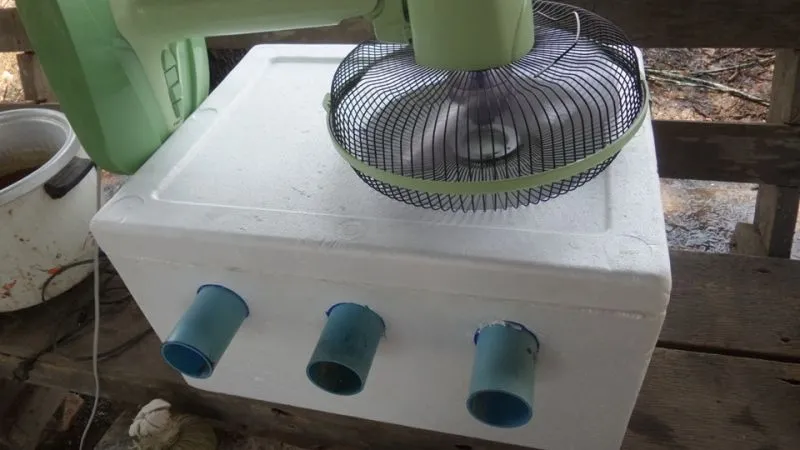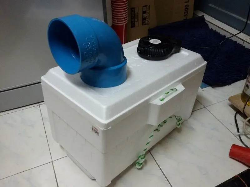 ปัจจุบันวิธีนี้เป็นที่นิยมมากสำหรับผู้ที่มีงบน้อย เพียงแค่นำลังโฟมมาเพื่อต่อต่อหรือขวดน้ำด้านข้าง หลังจากนั้นก็ทำให้ฝากล่องพอดีกับขนาดพัดลม และเทน้ำแข็งลงไปให้กล่อง หาผ้าคลุมเพื่อป้องกันการระเหยไว แค่นี้ก็สามารถมีอากาศที่เย็นสบายในราคาประหยัด