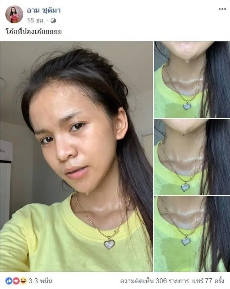 เป็นอีกหนึ่งนักร้องสาวที่กำลังมาแรงสุดในตอนนี้เลยก็ว่าได้จ้า สำหรับ อาม ชุติมา กว่าจะมาถึงจุดนี้ได้ก็ผ่านอุปสรรคมามากมายเช่นกัน ตอนนี้ก็เริ่มเข้าร่องเข้ารอยทำอะไรก็ปังๆ ล่าสุด เฟซบุ๊กส่วนตัวชื่อ อาม ชุติมา ได้โพสต์ภาพโชว์หน้าสด ระบุข้อความว่า โอ้ยพี่น้องเอ้ยยยยย ขนาด ลำไย ไหทองคำ ยังเข้ามากดไลก์