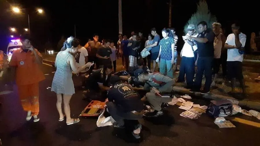 แก๊งเด็กแว๊นขี่จักรยานยนต์แข่งกัน พลาดไปเกี่ยวรถจักรยานยนต์ของสาวประเภทสองล้มหัวฟาดพื้นเสียชีวิตคาที่