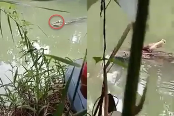 หนุ่มดำน้ำเพื่อซ่อมท่อ โอละหนอ...เจอจระเข้าคาบไป หลักฐานคาปากเลย
