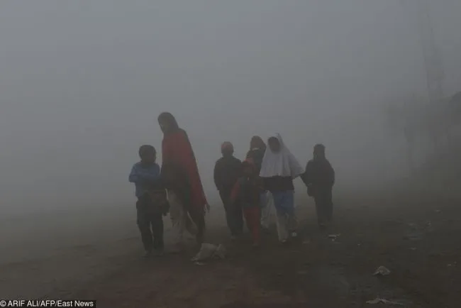 7 คุณแม่ชาวปากีสถานเดินไปพร้อมกับลูก ๆ เพื่อพาพวกเขาไปโรงเรียน ท่ามกลางหมอกหนาและสภาพหมอกควันในละฮอร์